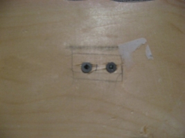 Jump cup. Measure where you want them, then drill short hole. Screw in cup. The bars for this jump are 3" apart. To make a jump cup, cut about 1/2 of the side of a film canister leaving the end intact. Drill hole in the centre for the screw.